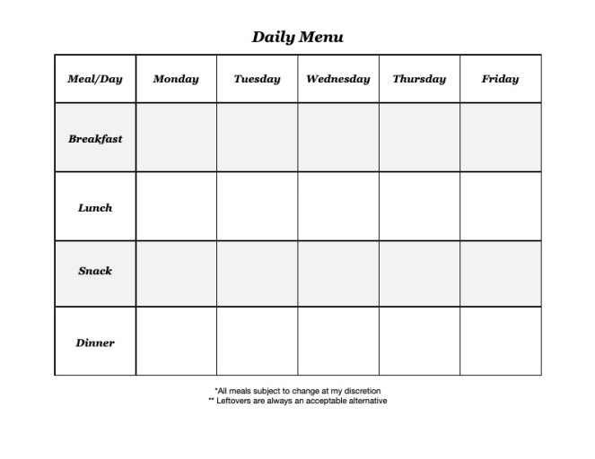 You may not like anything on our menu so I made a blank one you can fill out on your own:
