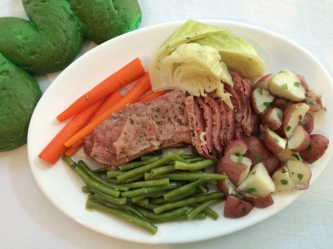 St. Patricks Day is next week; I can’t wait! I love the traditional (American) St. Patrick’s Day meal: Corned Beef, Cabbage, Carrots, Potatoes… I want it all. I’m kind of the only one in my little family that loves it though. E likes corned beef but not cabbage. A likes the carrots. They all prefer a grilled corned beef & cheese sandwich to a plate full of the above mentioned food.